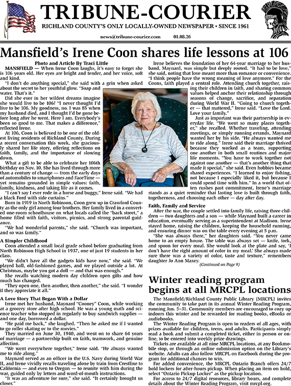 Tribune-Courier FREE by email each week. Send your name and email address to news@tribune-courier.com T-C BACK ISSUES
