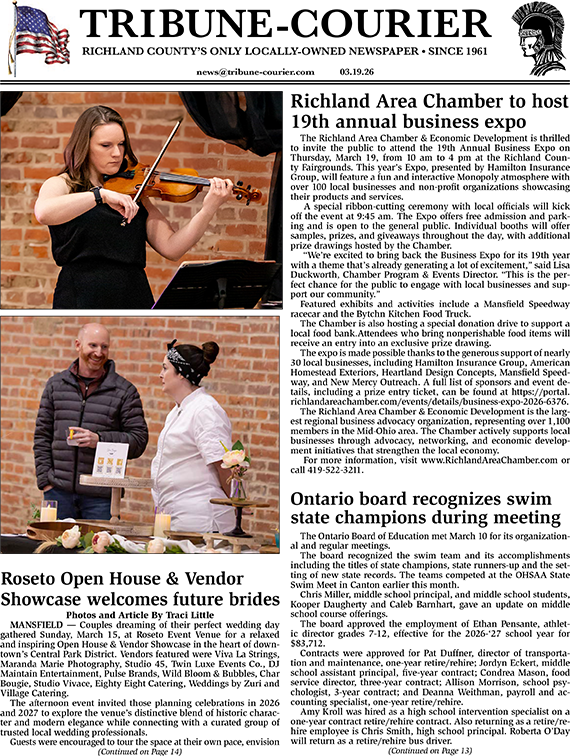 Tribune-Courier FREE by email each week. Send your name and email address to news@tribune-courier.com T-C BACK ISSUES